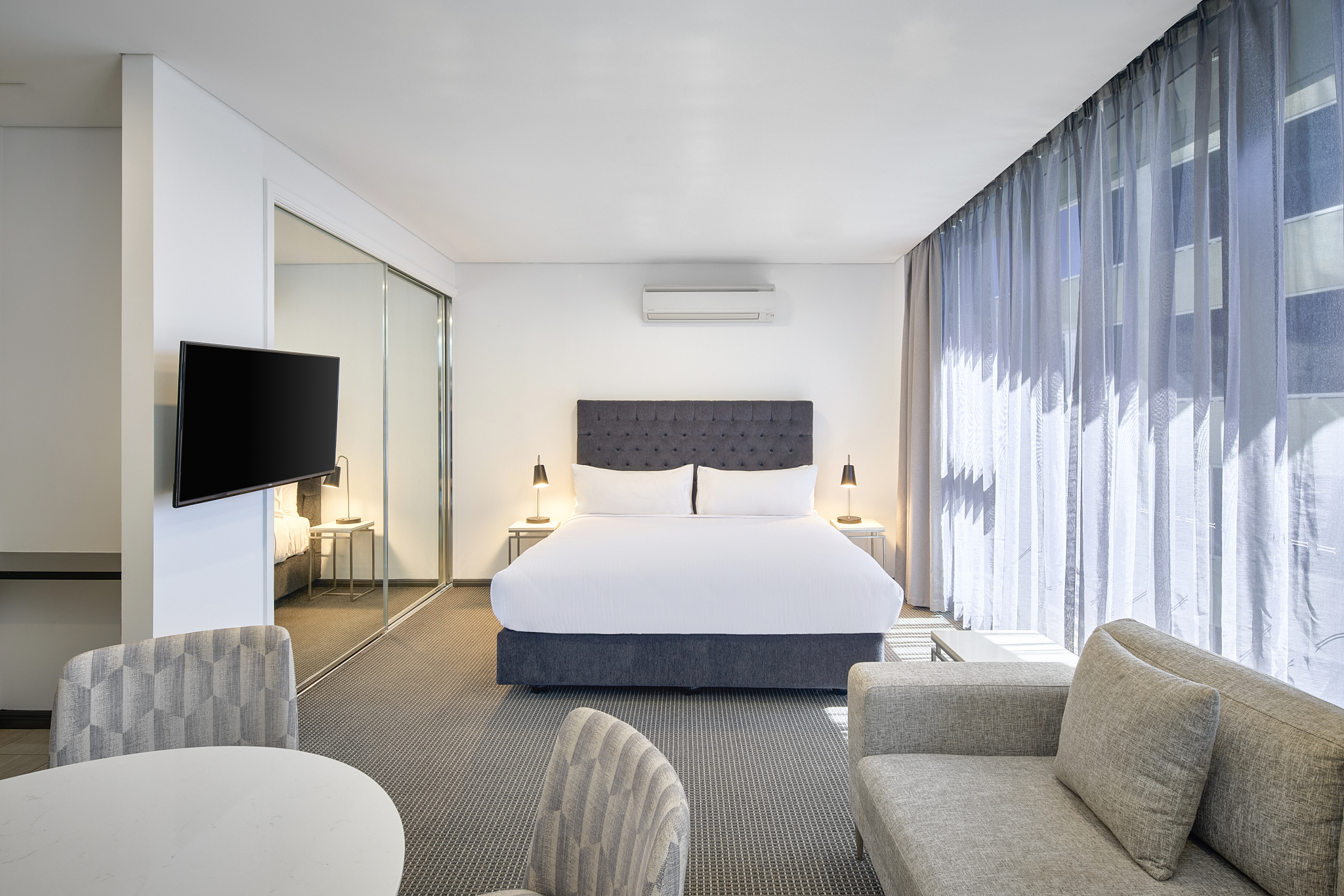 Experience comfort, style, and convenience in every suite at Meriton Suites Campbell Street.