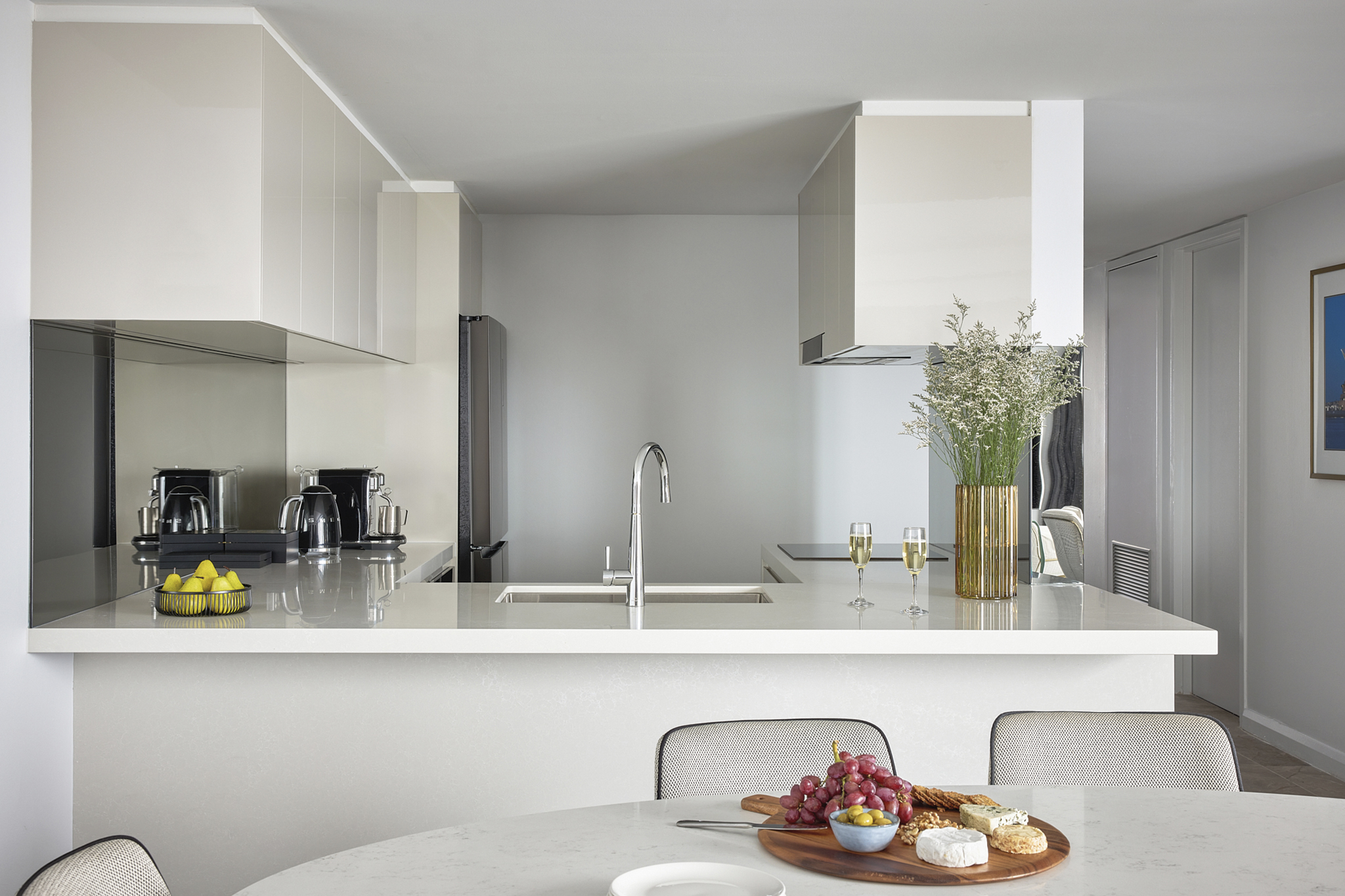 Promising a stay with the finest furnishings, indulgent bathroom amenities and phenomenal views to deliver memories that will last a lifetime. Even take a glimpse of the famous Sydney Harbour Bridge from the comfort of the beautifully appointed master bedroom. As you open the door to the extraordinary suites, your attention will immediately be drawn to the floor-ceiling glass windows, which offer sweeping views of our iconic Sydney city skyline and beyond. Take the time to lounge on our superior furnishings and enjoy the scenery with a coffee from your very own Nespresso coffee machine or tea from a selection of fine handcrafted blends or come home to an immaculate suite after its daily turndown service, complete with the delicate touches to set the perfect setting for a luxury stay.